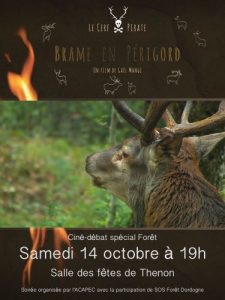 L’association ACAPEC de Thenon pour la protection du Causse organise une soirée sur la forêt à la salle des fêtes de Thenon. le samedi 14 octobre à 19h. Le film « Brame en Périgord » sera diffusé et on parlera de faune sauvage et évidemment de forêt!