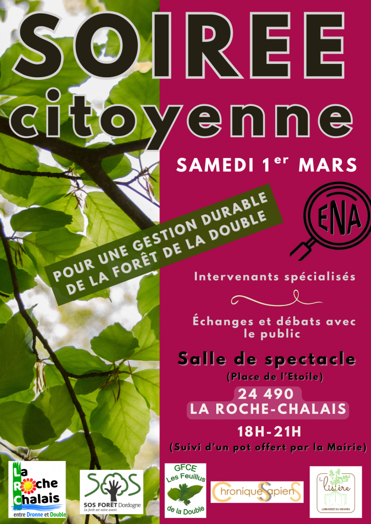 Soirée citoyenne sur la forêt de la Double sur la commune de La Roche Chalais (Dordogne)