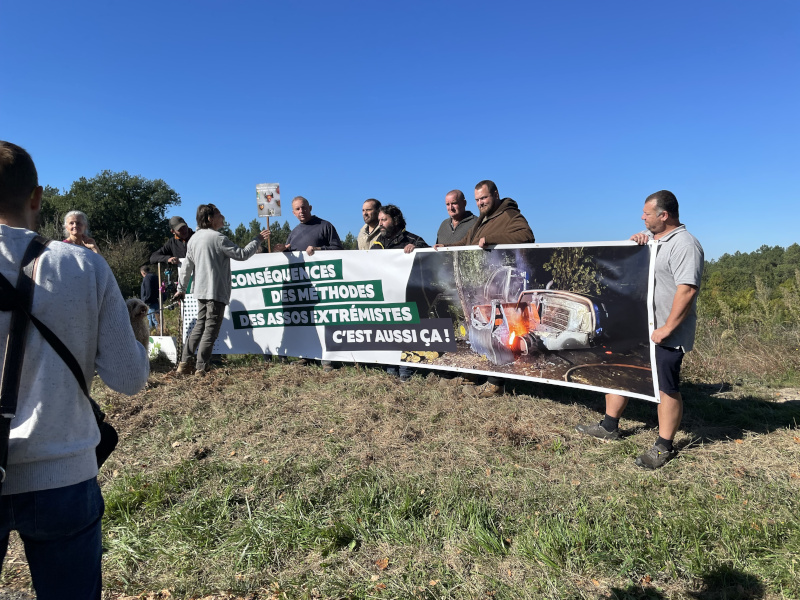 Par la suite, les représentants de la filière bois sont venus nous rejoindre, brandissant une banderole qui accuse les associations qu’ils qualifient d’extrémistes (devons-nous comprendre environnementales ?) de pousser leurs adhérents et sympathisants à la dégradation d’abatteuses. Leur colère s’explique, et nous la comprenons : nous avons toujours condamné la destruction de matériel. Ces échanges ont permis de trouver des points d’accord et d’apaisement.
